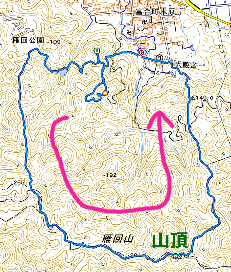 熊本市 木原まちの広場 −−−−−− 登山開始 −−−−−− 木原まちの広場 奥の院 小城展望所 富合コース 雁回公園コース 管理道 第一展望所 雁回山 尾根コース 宮山展望所 六殿神社 木原まちの広場 −−−−−− 登山完了 −−−−−− 木原まちの広場 熊本市 |