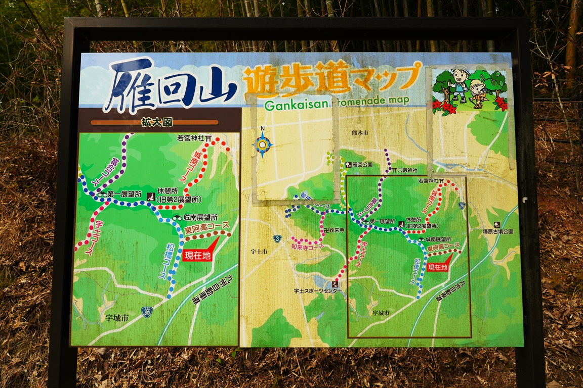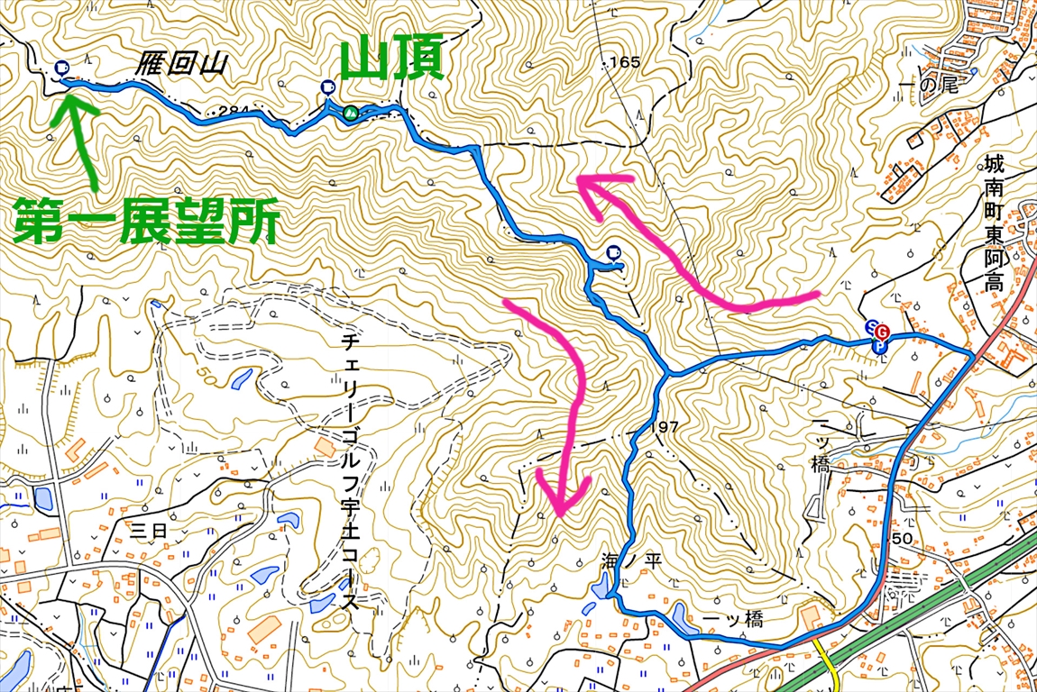 熊本市 東阿高駐車場 −−−−−− 登山開始 −−−−−− 東阿高駐車場 東阿高コース 城南展望所 雁回山 第一展望所 東阿高コース 城南展望所 松橋コース 国道 266 号線 東阿高駐車場 −−−−−− 登山完了 −−−−−− 東阿高駐車場 熊本市 |