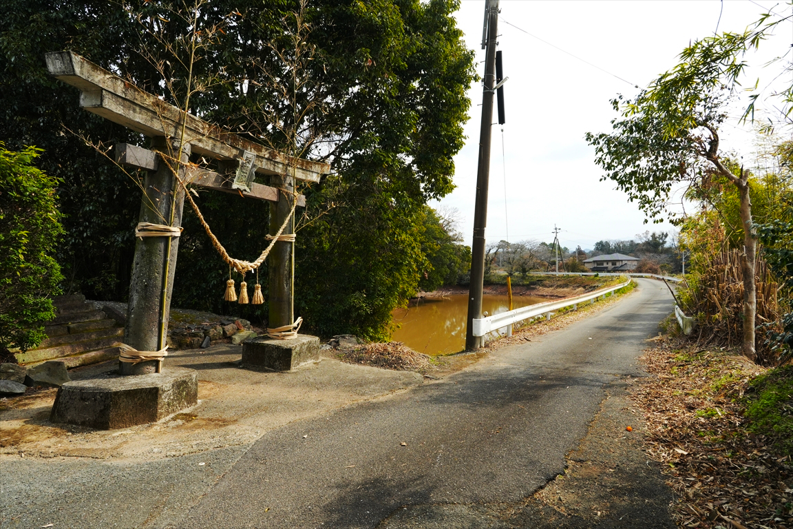 少し先に鳥居と池。
