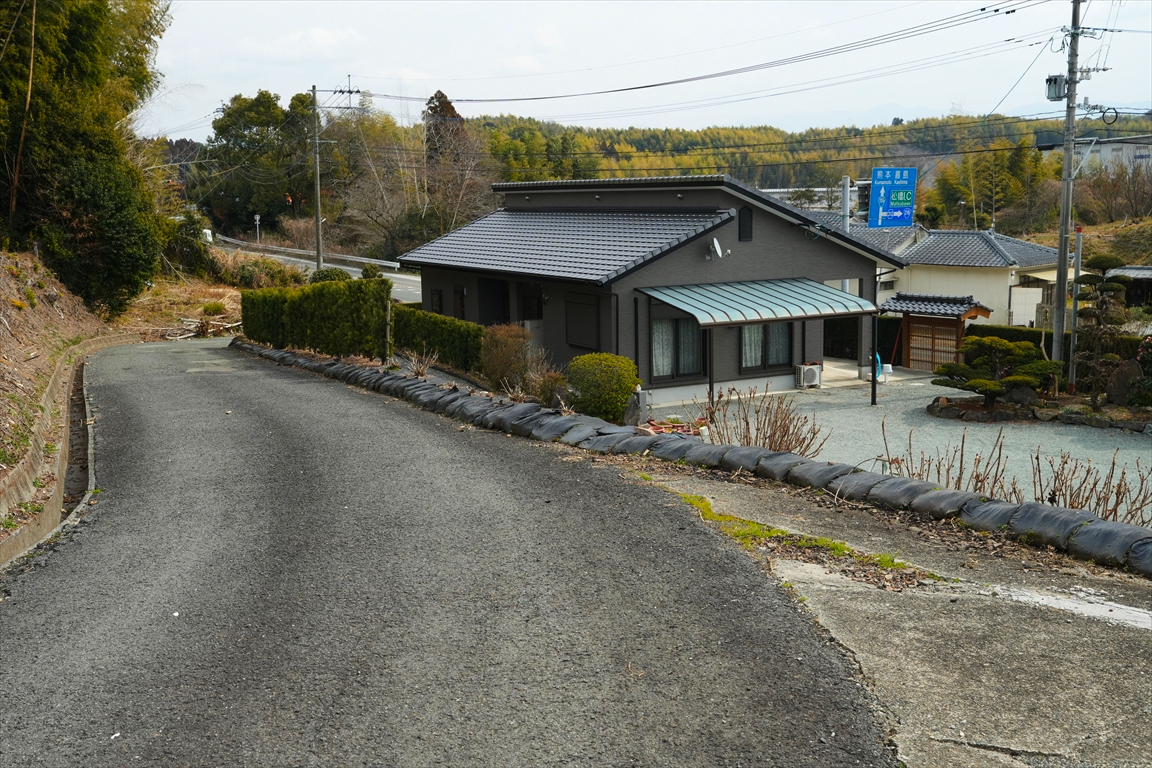 すぐ先に民家と車が