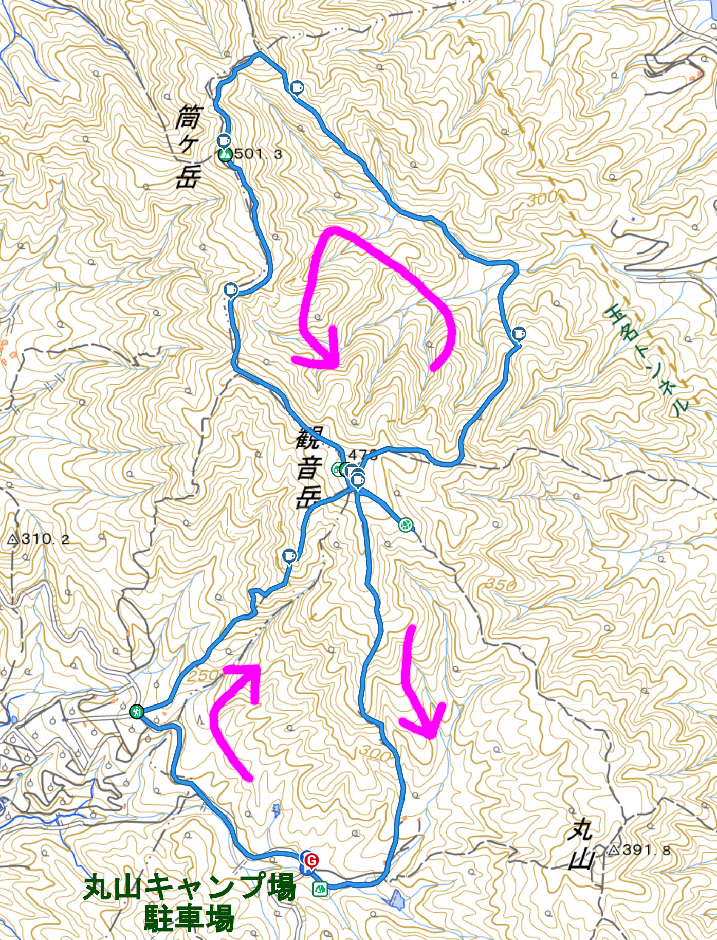 熊本市 丸山キャンプ場駐車場 −−−−−− 登山開始 −−−−−− 丸山キャンプ場駐車場 紅葉ロード 唐渡岩コース 観音岳 北東斜面ルート 筒ヶ岳 七峰台 観音岳 うさぎ石 観音岳 観音岳コース 丸山キャンプ場駐車場 −−−−−− 下山完了 −−−−−− 丸山キャンプ場駐車場 熊本市 |
