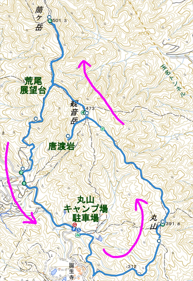 熊本市 丸山キャンプ場駐車場 −−−−−− 登山開始 −−−−−− 丸山キャンプ場駐車場 丸山展望所旧道 丸山展望所 うさぎ石 観音岳 唐渡岩 観音岳 七峰台 荒尾展望台 筒ヶ岳 樺登山口 丸山キャンプ場駐車場 −−−−−− 下山完了 −−−−−− 丸山キャンプ場駐車場 熊本市 |