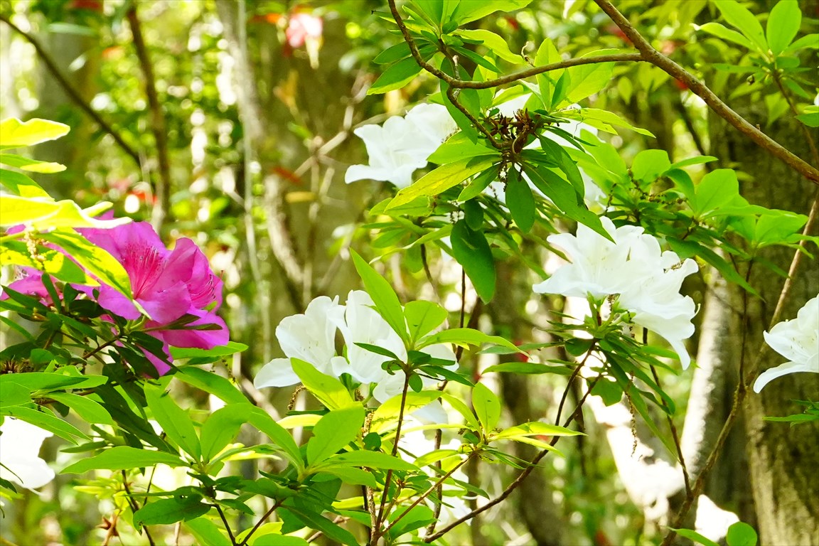 白いツツジの傍にピンクの