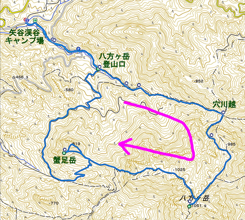 熊本 菊池 矢谷渓谷キャンプ場 −−−−−− 登山開始 −−−−−− 矢谷渓谷キャンプ場 八方ヶ岳登山口 穴川越 班蛇口分岐 山ノ神分岐 八方ヶ岳 山ノ神分岐 蟹足岳 伐採地 林道 八方ヶ岳登山口 矢谷渓谷キャンプ場 −−−−−− 下山完了 −−−−−− 矢谷渓谷キャンプ場 菊池 熊本 |