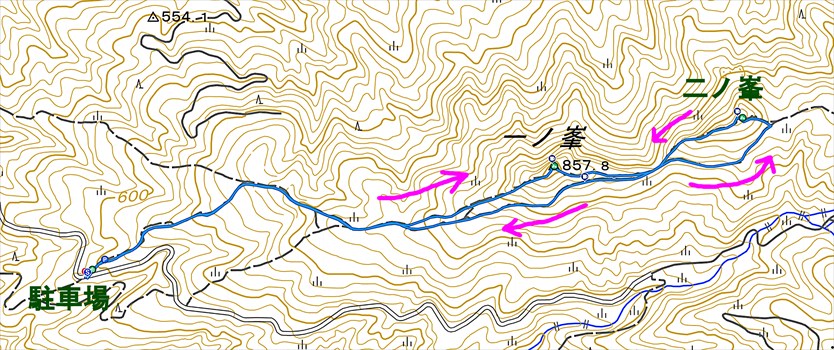 熊本市 一ノ峯登山口 −−−−−− 登山開始 −−−−−− 一ノ峯登山口 一ノ峯稜線 一ノ峯 二ノ峯巻き道 二ノ峯 二ノ峯稜線 一ノ峯巻き道 一ノ峯登山口 −−−−−− 下山完了 −−−−−− 一ノ峯登山口 熊本市 |