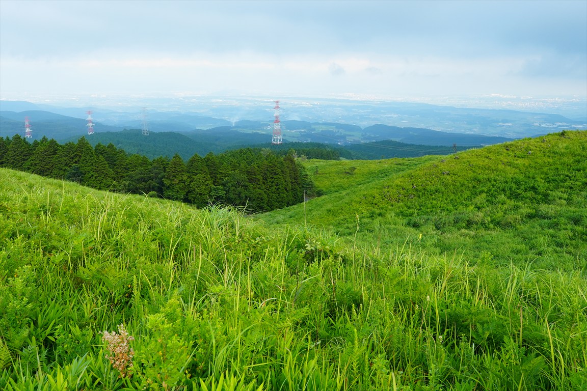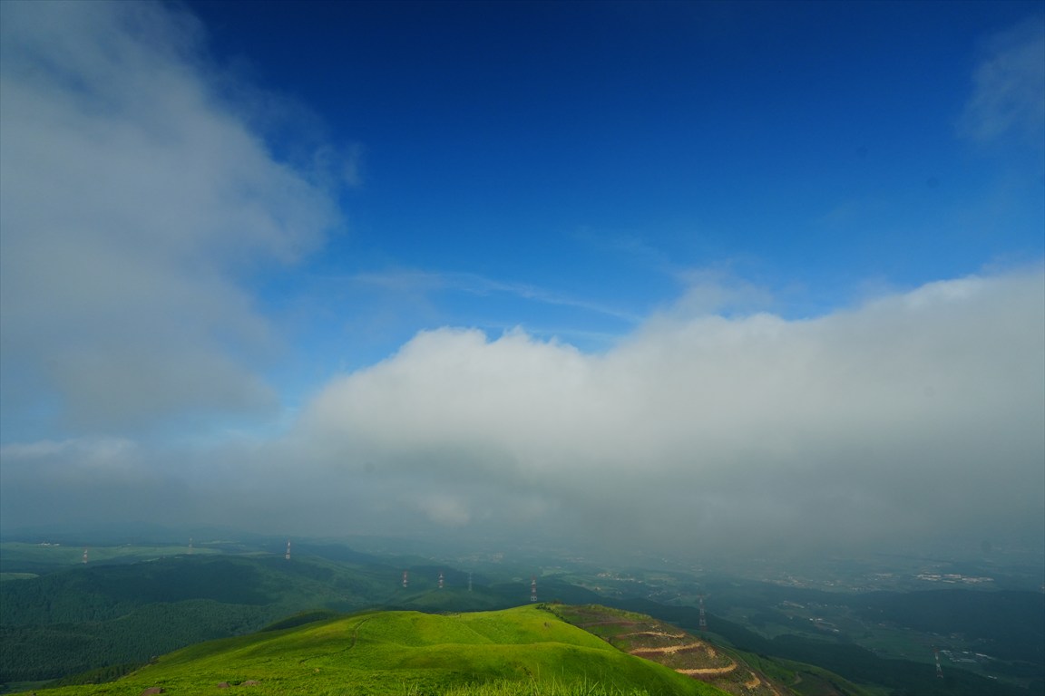 熊本市内はやや霞んでいて、
