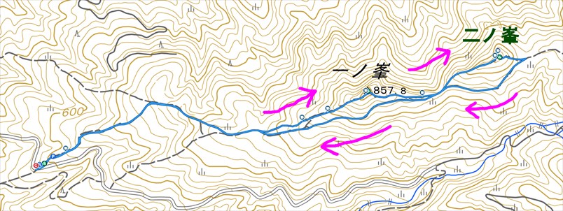 熊本市 一ノ峯登山口 −−−−−− 登山開始 −−−−−− 一ノ峯登山口 一ノ峯稜線 一ノ峯 二ノ峯稜線 二ノ峯 二ノ峯巻き道 一ノ峯巻き道 一ノ峯登山口 −−−−−− 下山完了 −−−−−− 一ノ峯登山口 熊本市 |