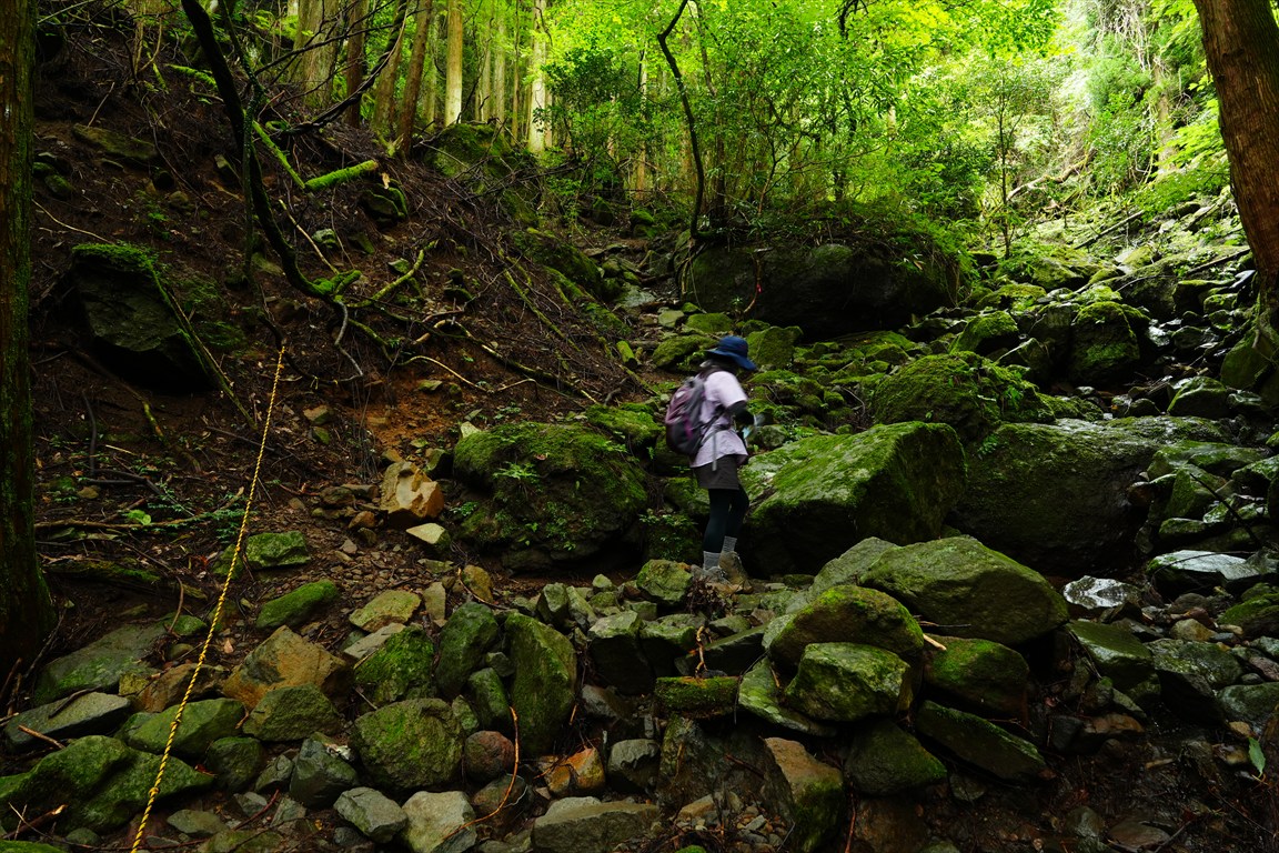 ゴロゴロ岩とロープ区間・・・