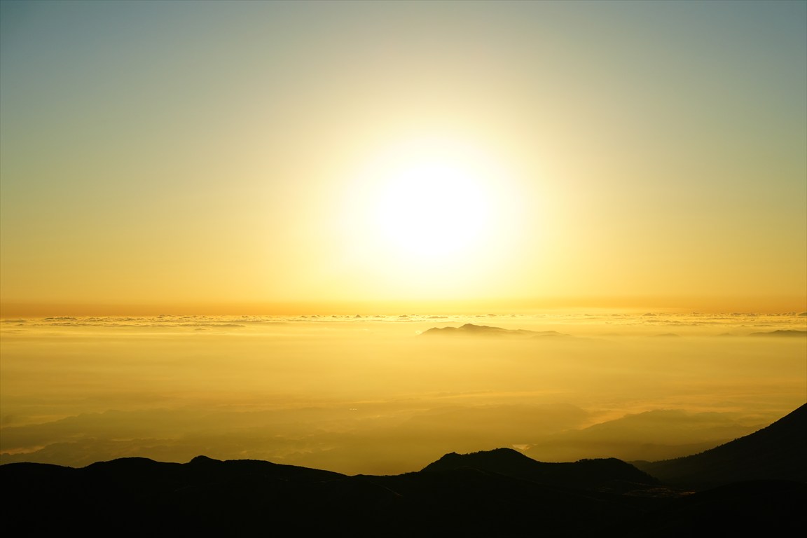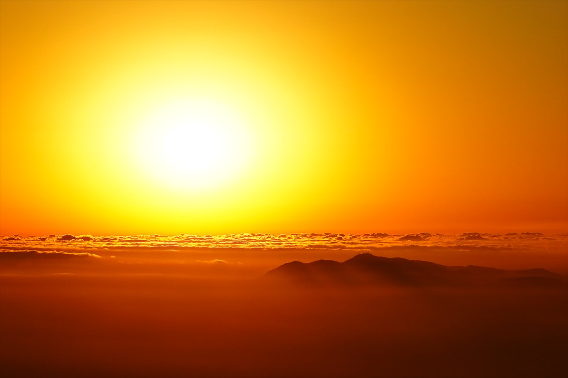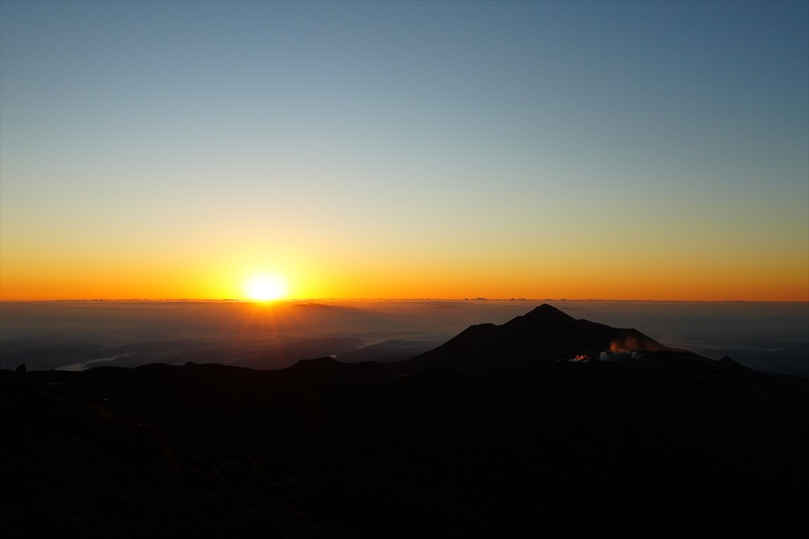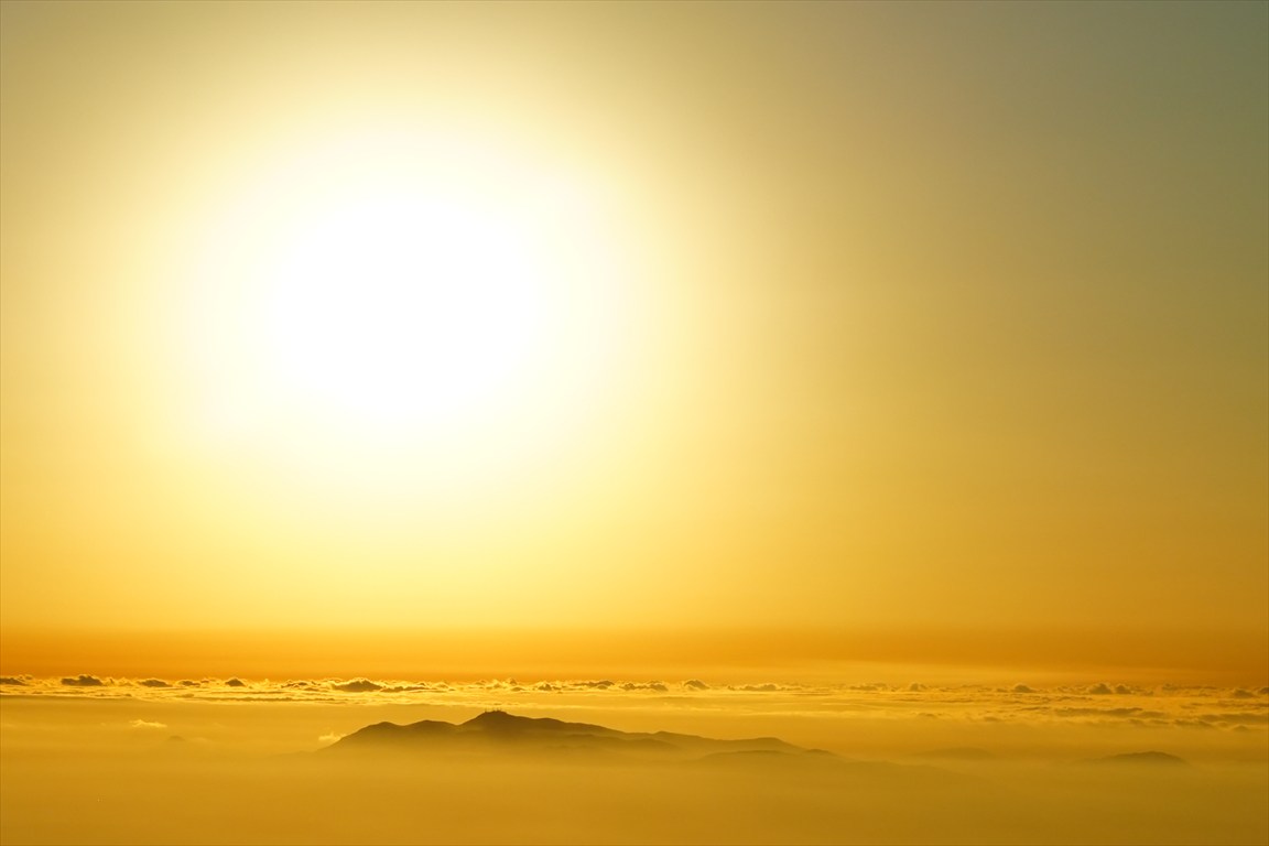 日の出、青空の写真が