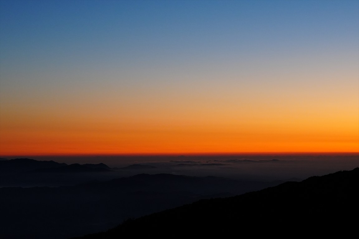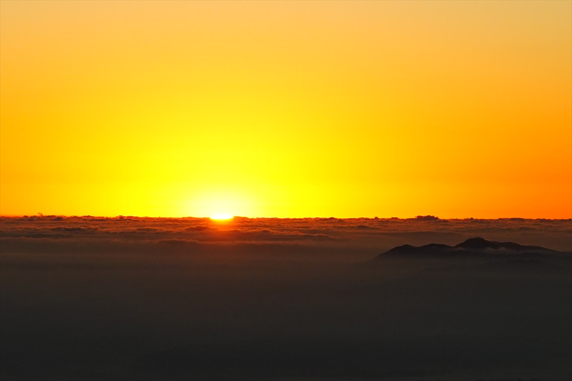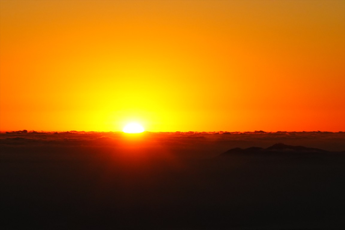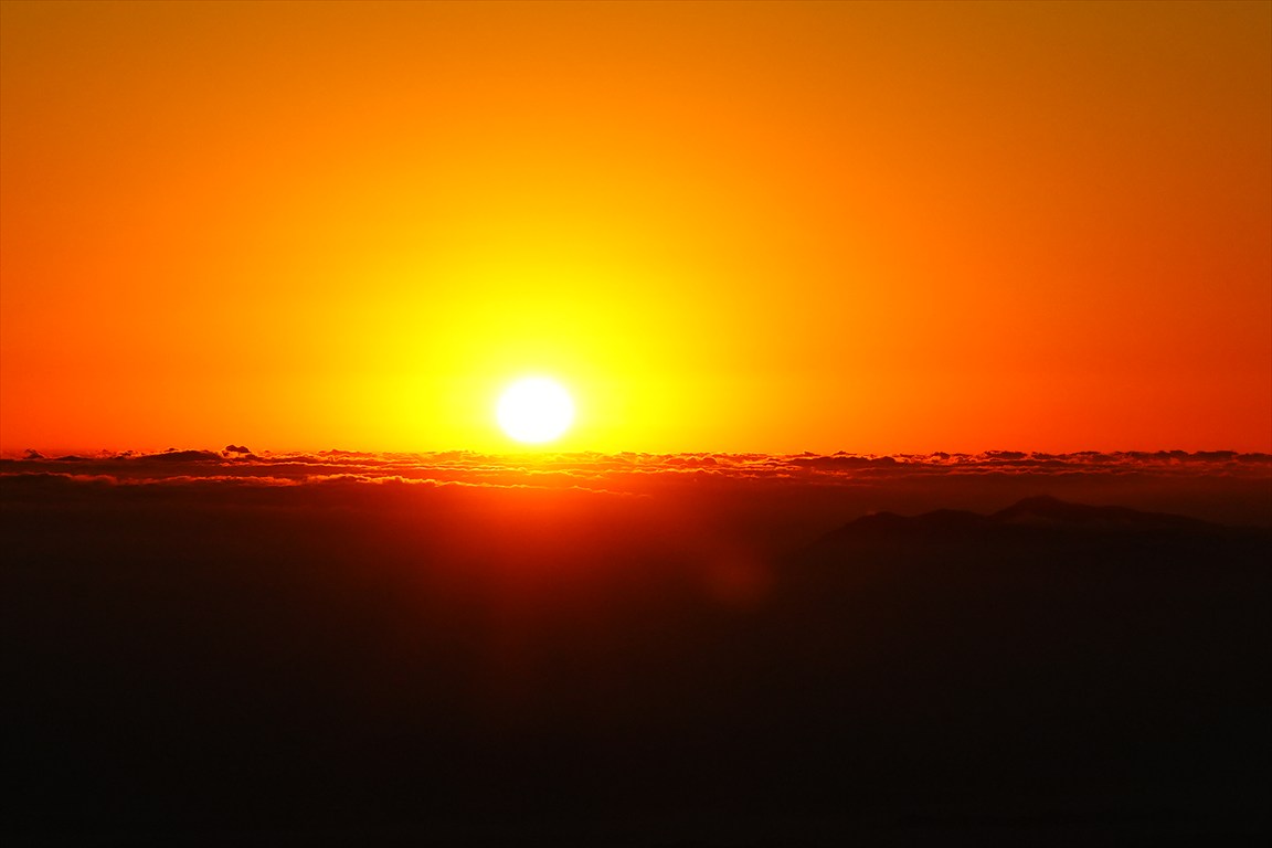 日の出、青空の写真が