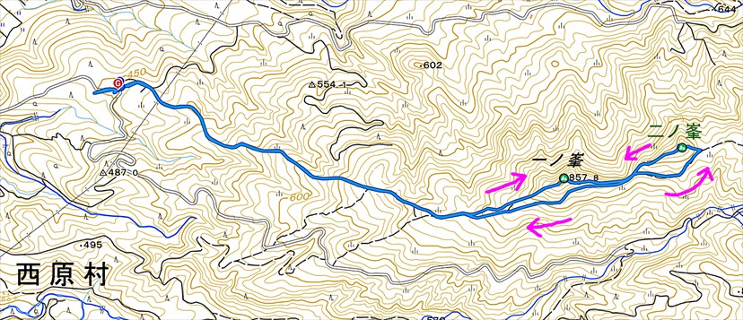 熊本市 鉄塔傍登山口 −−−−−− 登山開始 −−−−−− 鉄塔傍登山口 一ノ峯稜線 一ノ峯 二ノ峯巻き道 二ノ峯 二ノ峯稜線 一ノ峯巻き道 鉄塔傍登山口 −−−−−− 下山完了 −−−−−− 鉄塔傍登山口 熊本市 |