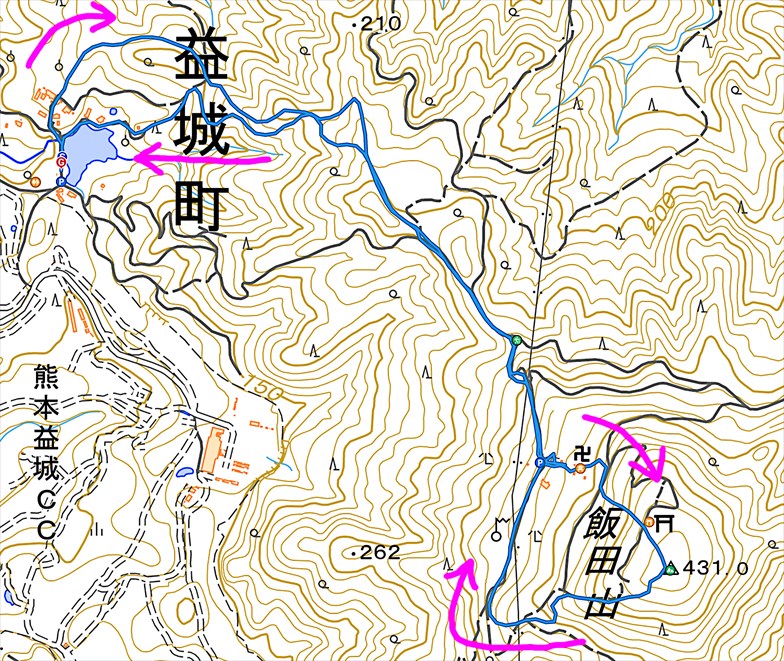 熊本市 飯田公園駐車場 −−−−−− 登山開始 −−−−−− 飯田公園駐車場 山道 よめご坂 常楽寺 男坂 飯田山 鉢巻回遊道 常楽寺 山道 飯田公園駐車場 −−−−−− 下山完了 −−−−−− 飯田公園駐車場 熊本市 |