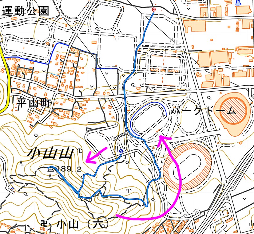 熊本市 総合運動公園 −−−−−− 散策開始 −−−−−− 北東側車道 神園山小山山緑地展望所 小山山 山頂 神園山小山山緑地展望所 小山山緑地遊歩道入り口 −−−−−− 散策完了 −−−−−− 総合運動公園 熊本市 |