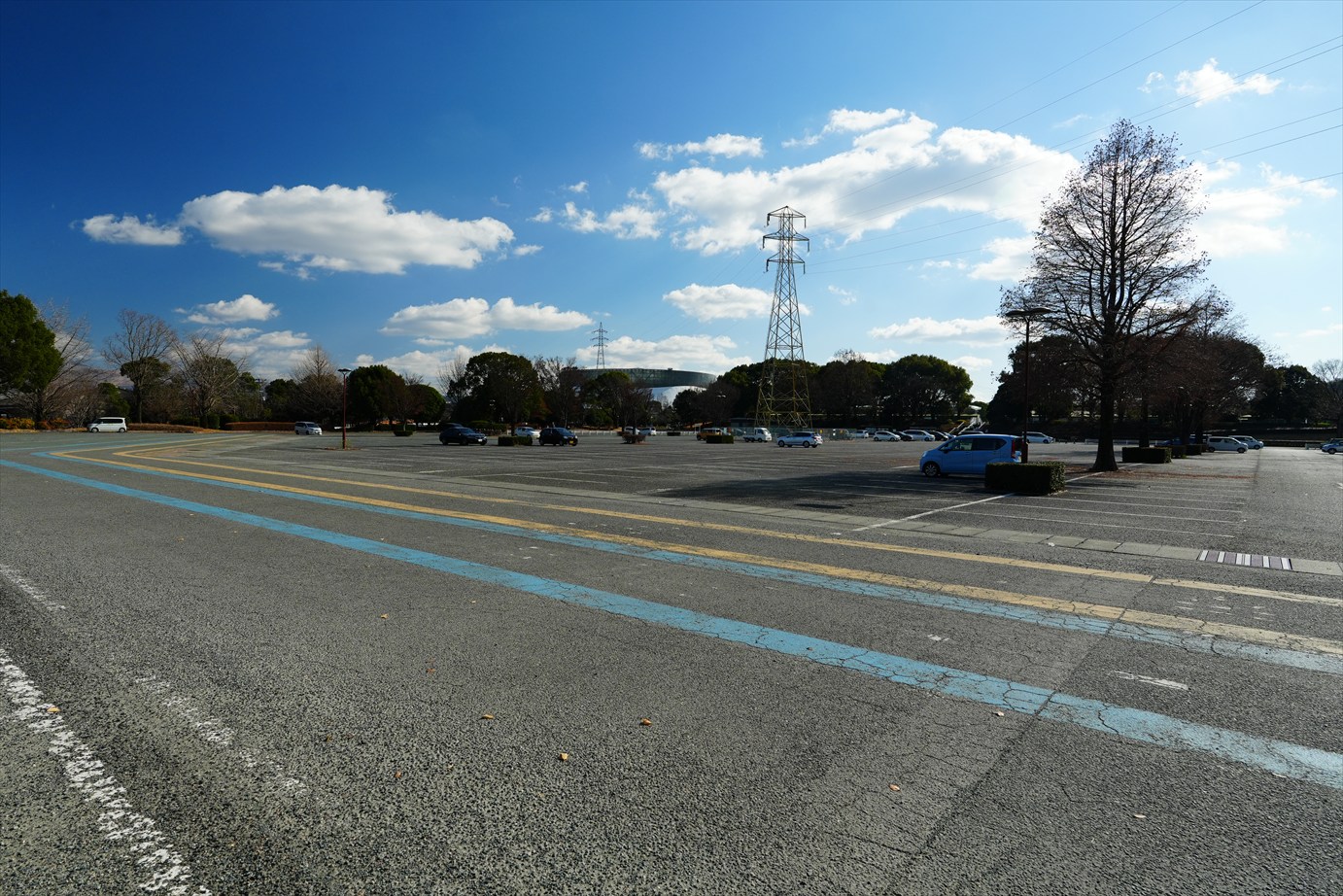 運動公園のメイン駐車場。