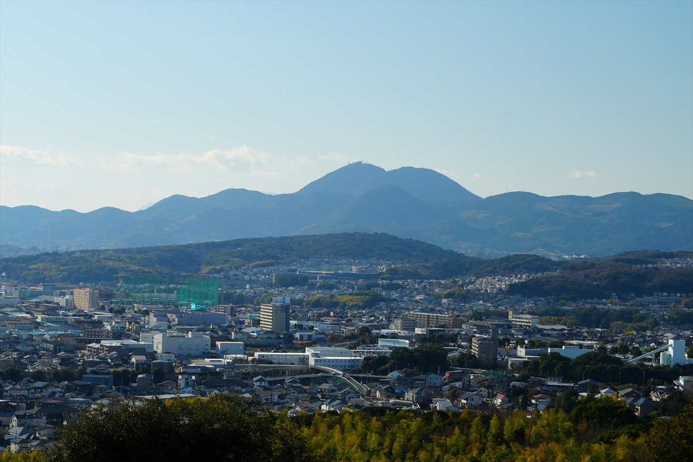 熊本市内の向こうは金峰山。