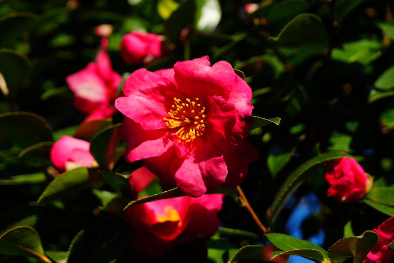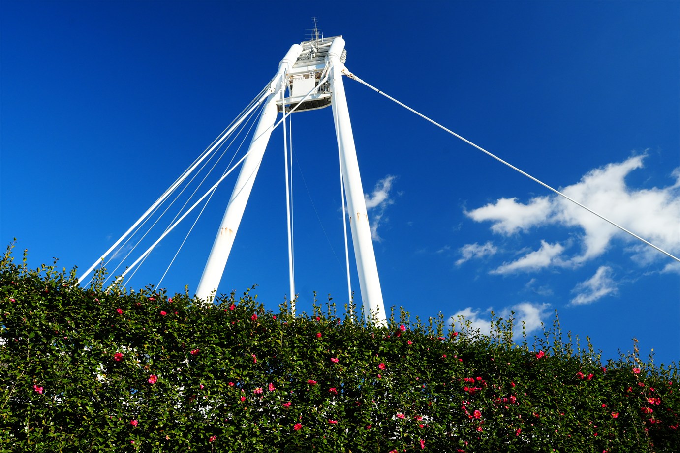 スタジアムの前には山茶花。