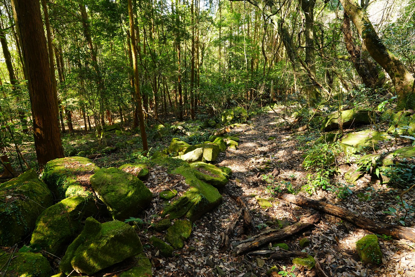 その先は苔生した岩が