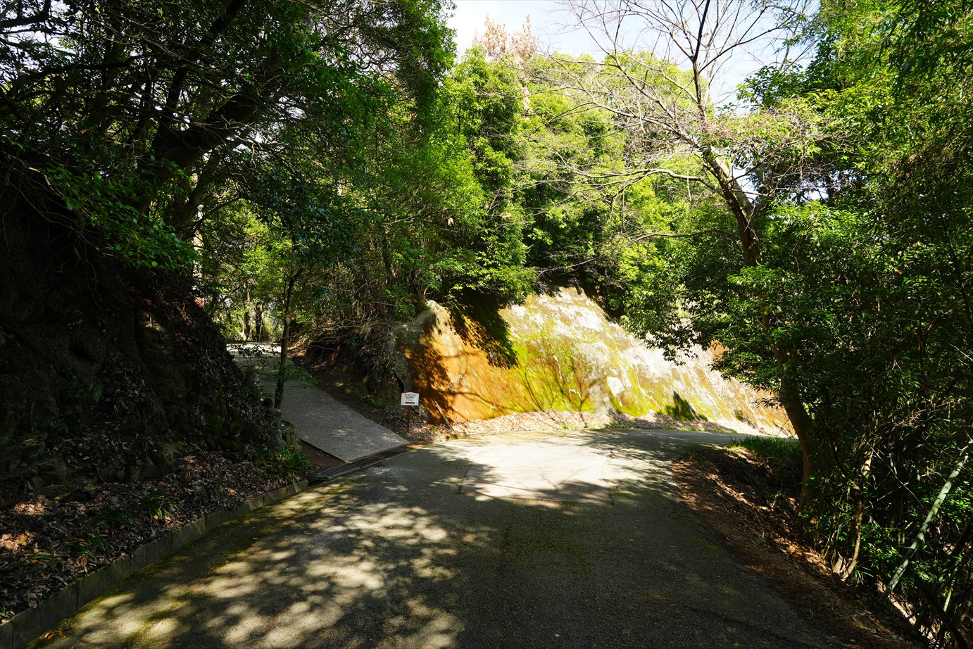左が駐車場へ降りて行く道。