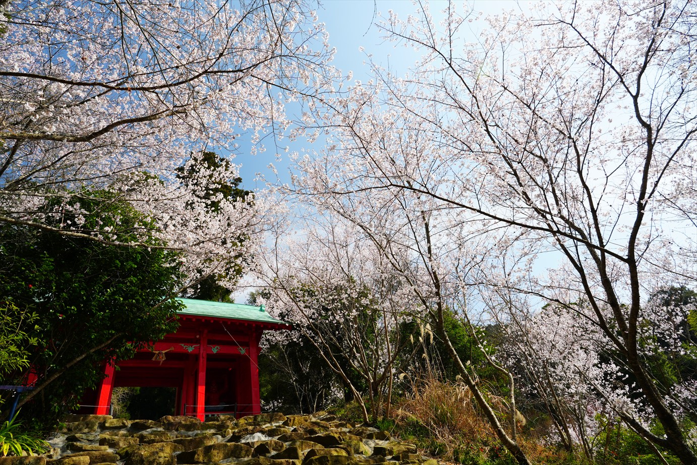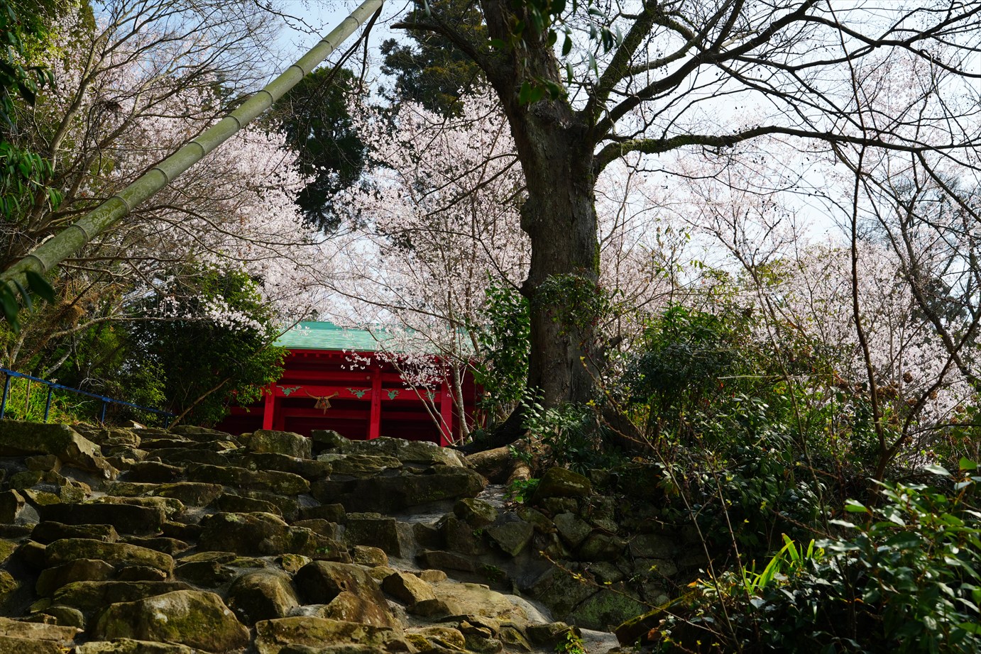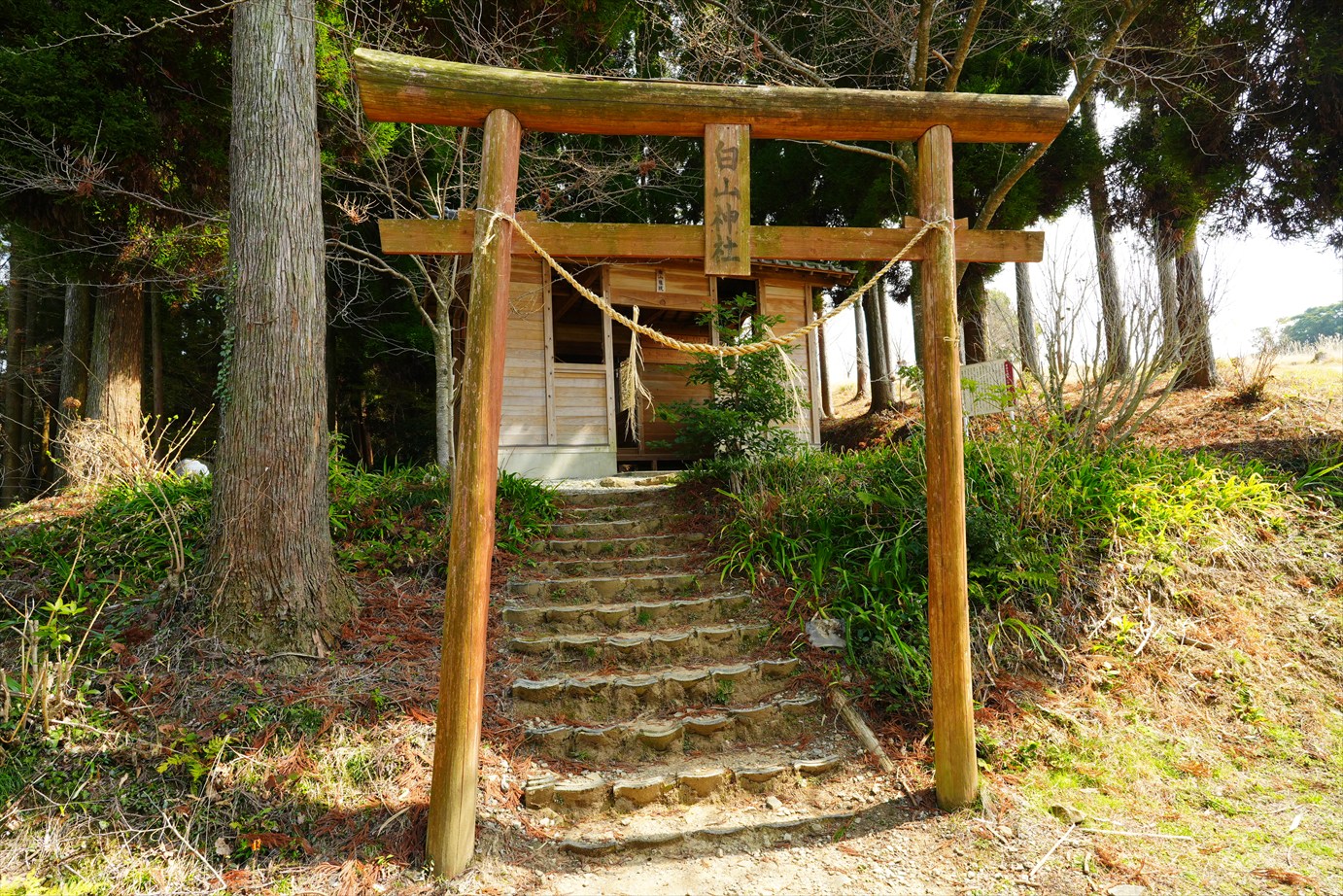 石段の途中から境内に入ると、