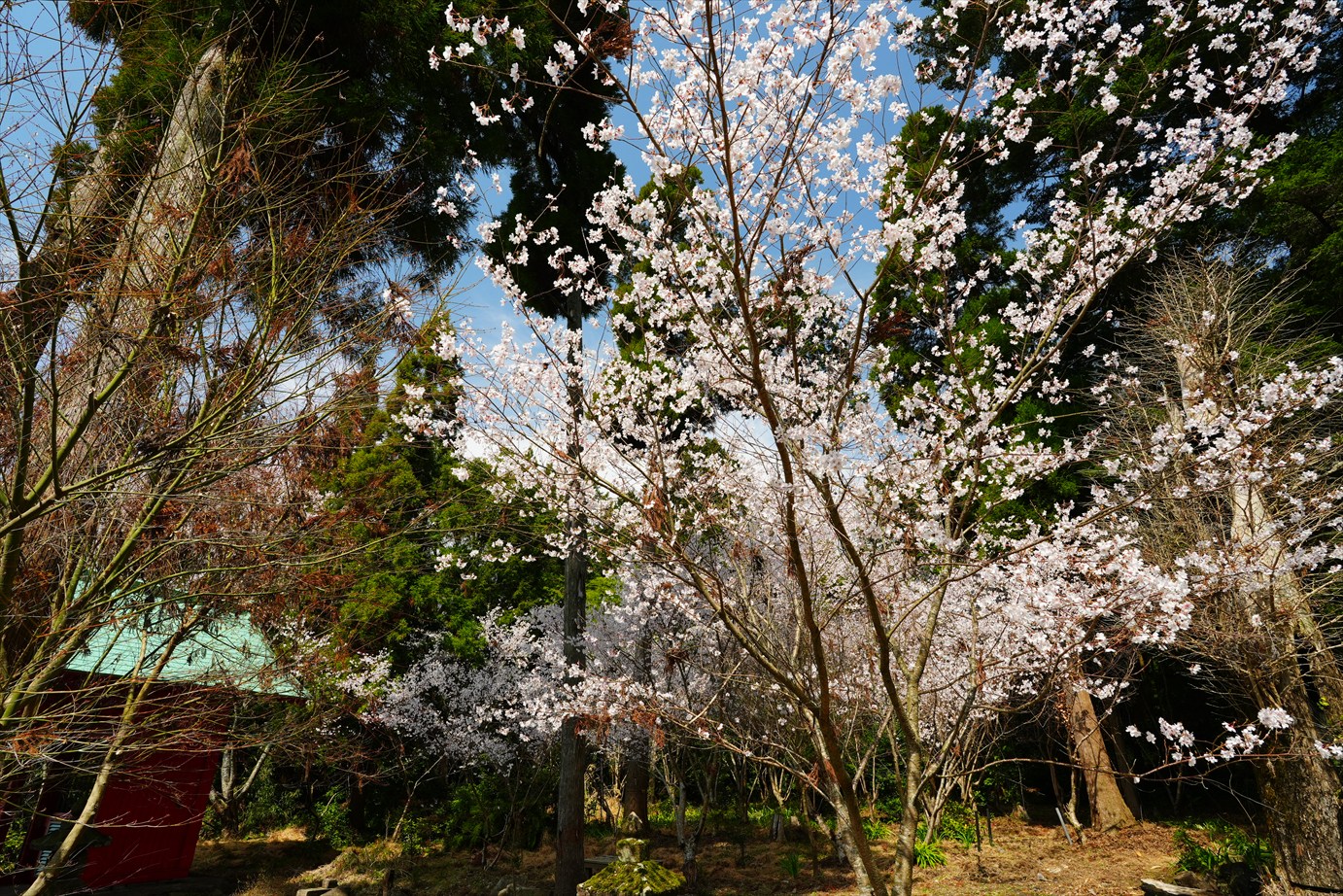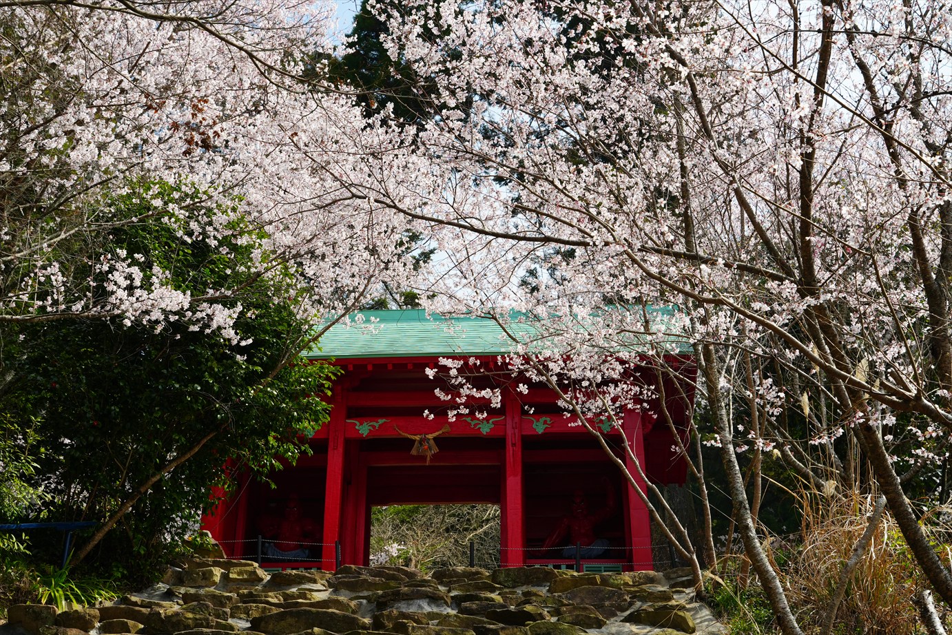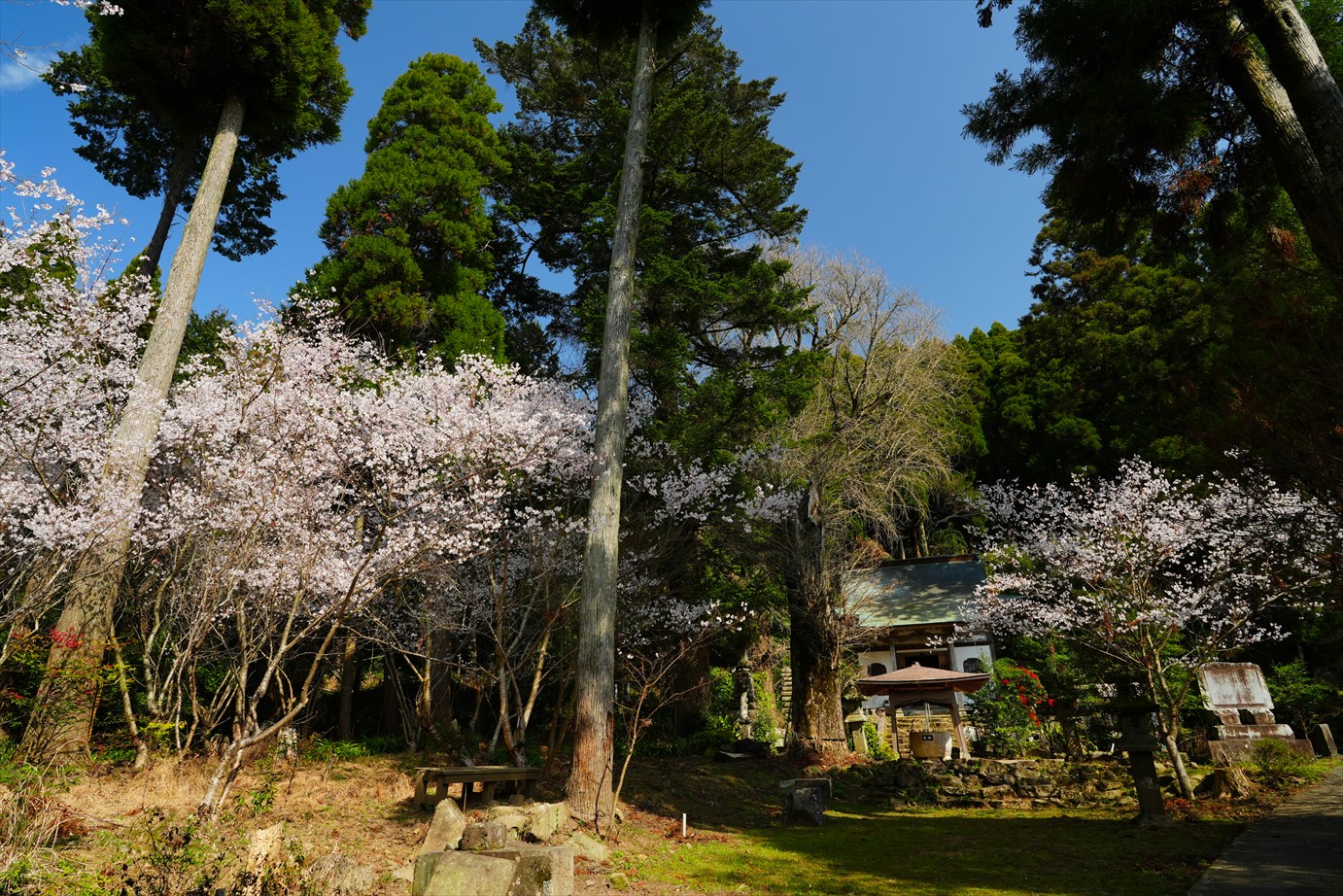 常楽寺の石段の上の桜、