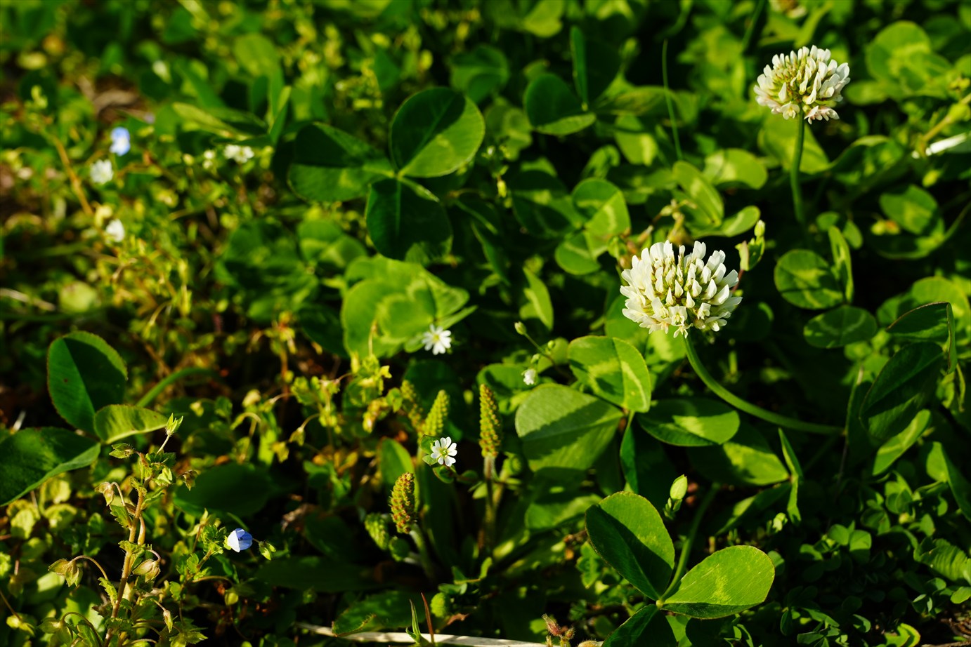 右の大きいのは白詰草だけど、