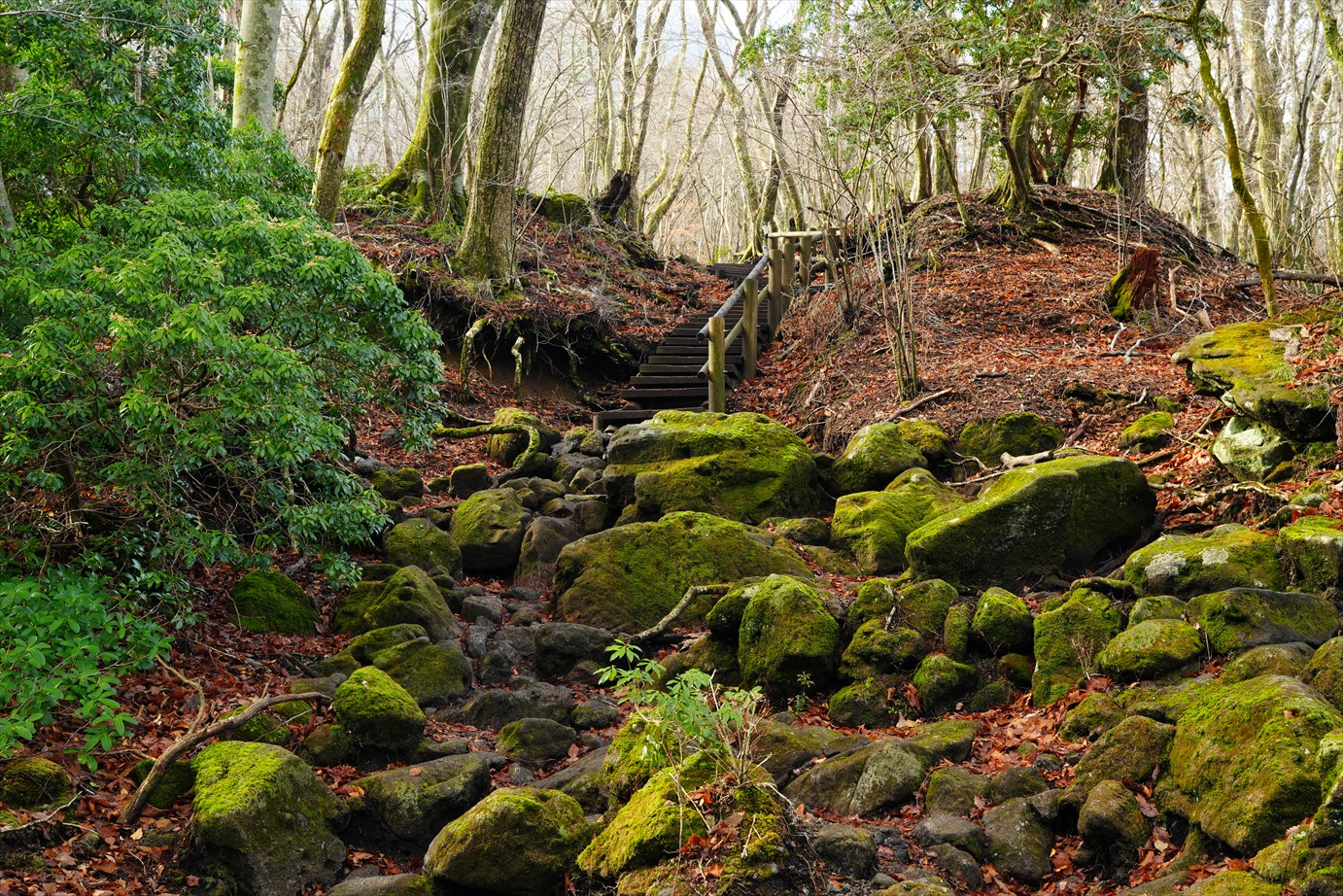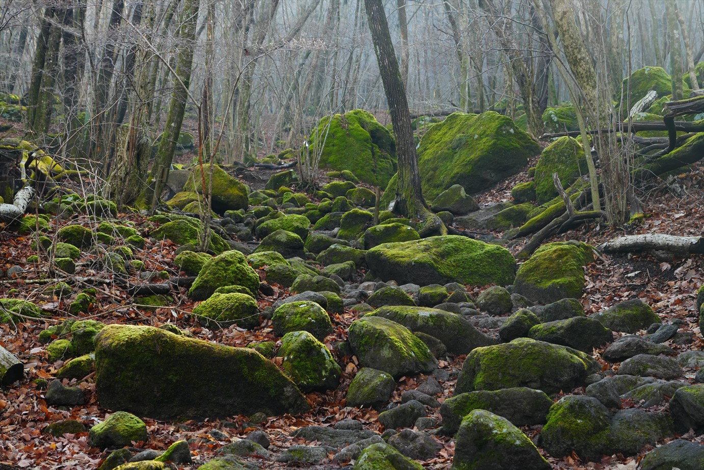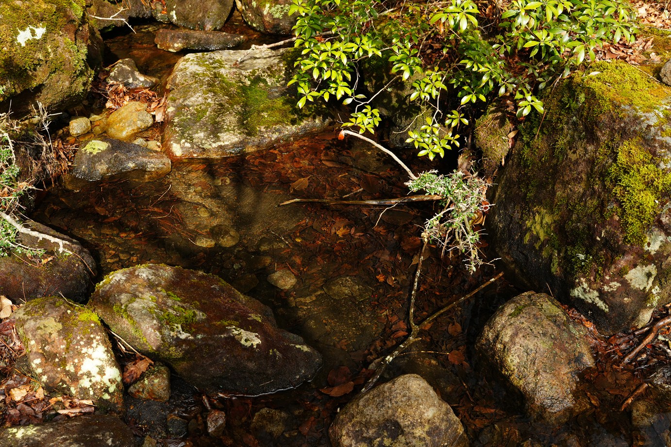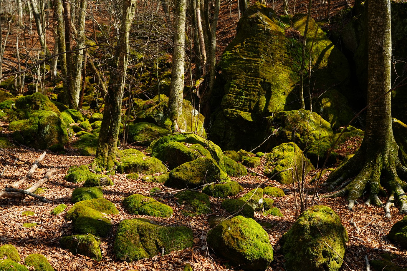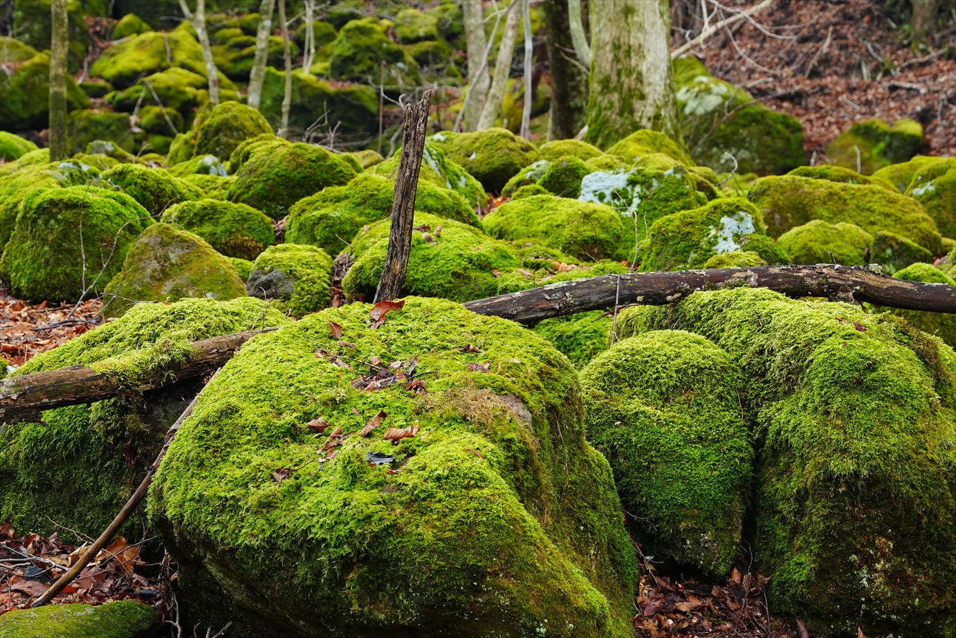 苔生した大きめの岩がゴロゴロ。