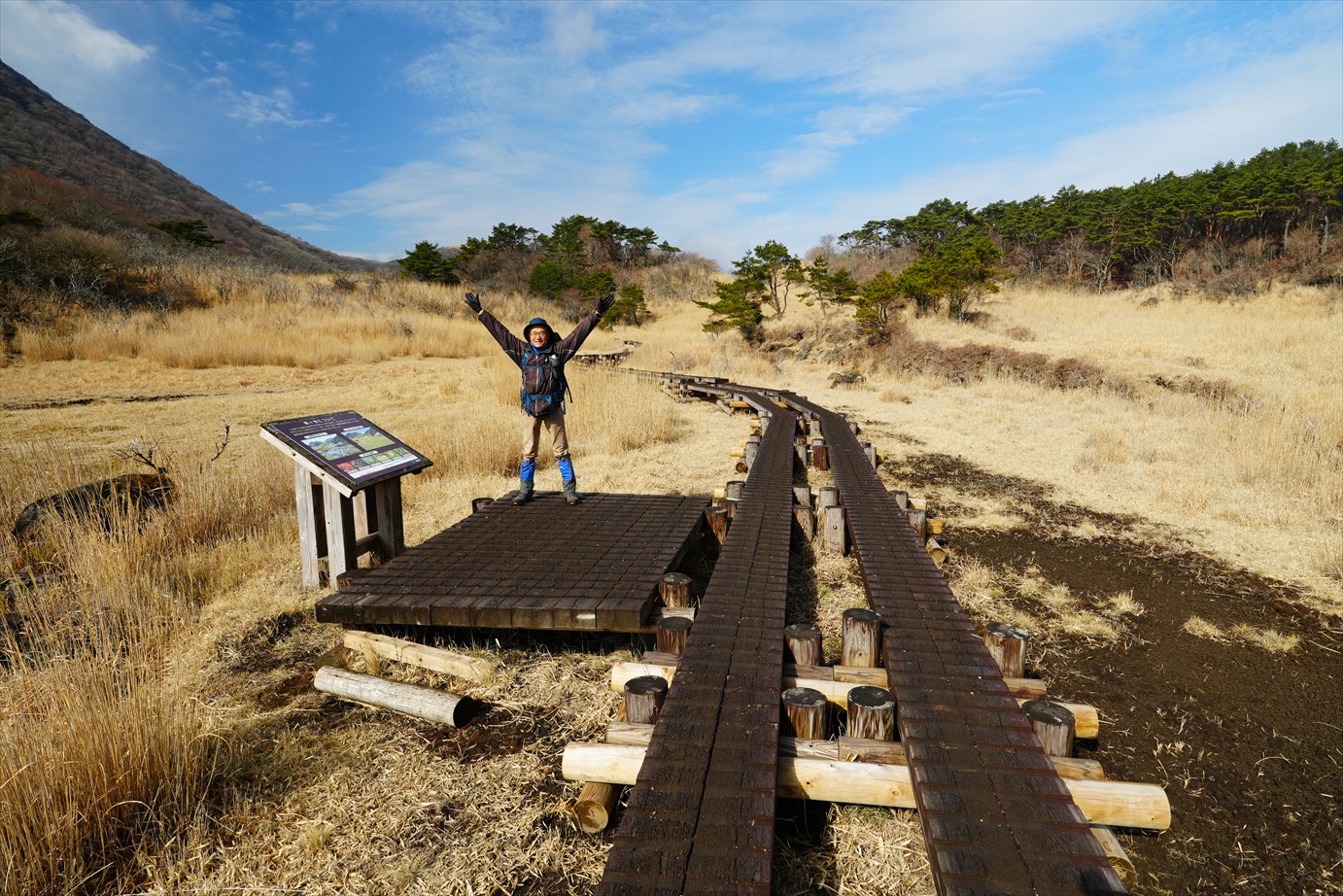 目の前に木道が見えてきたよ。