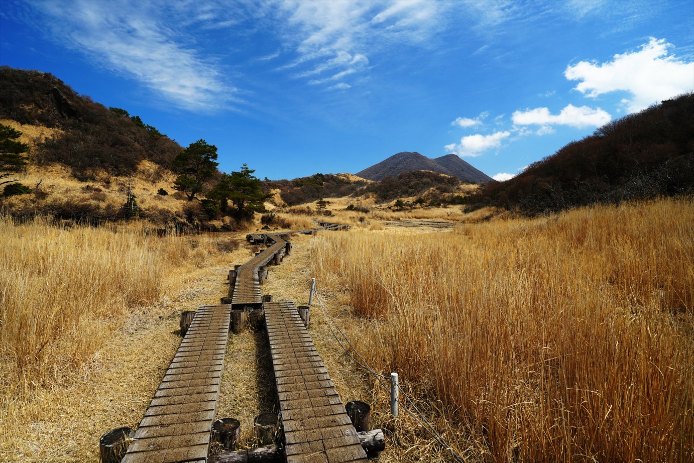 背景はくじゅう連山。