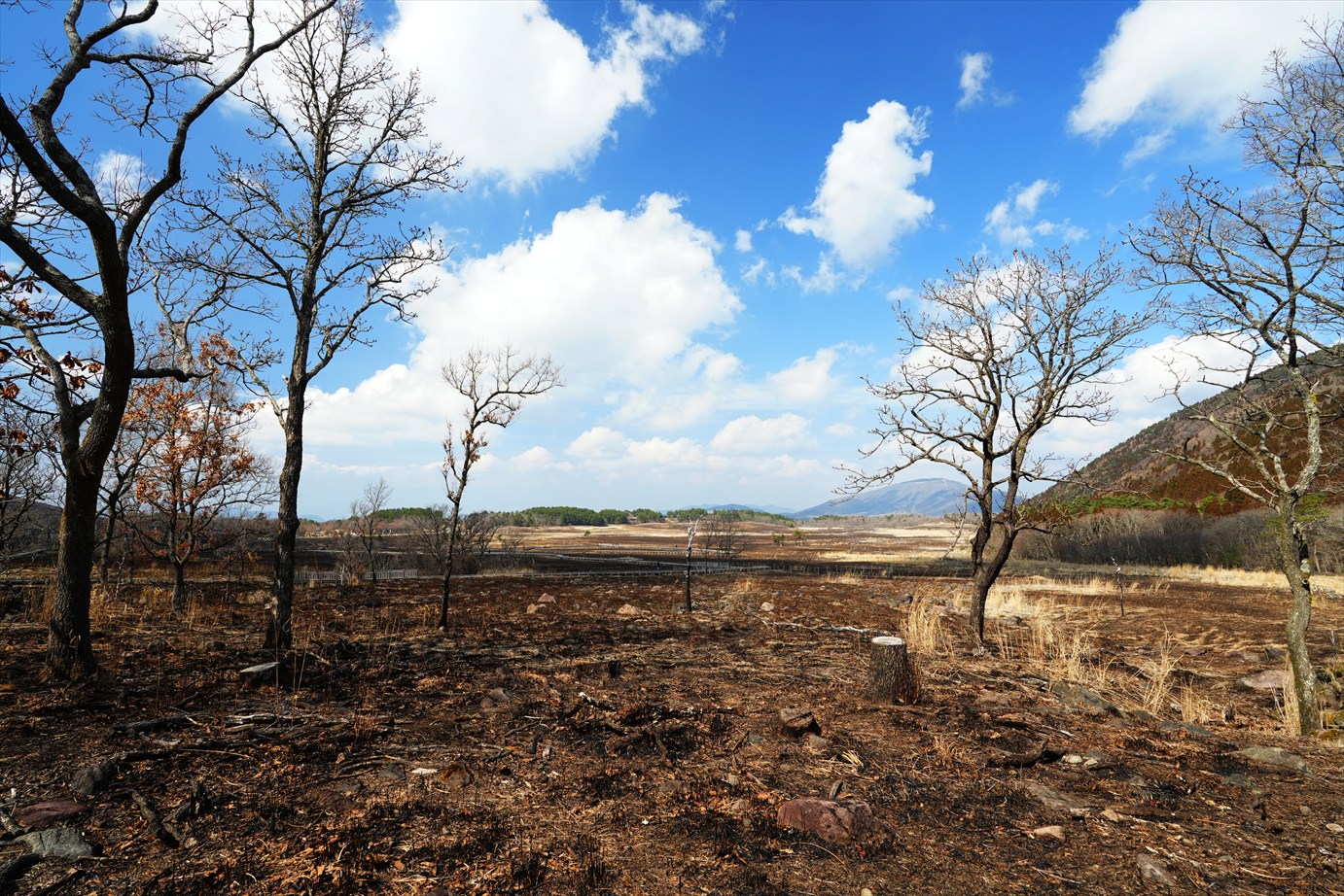 今回はくじゅうの野焼き後の光景が