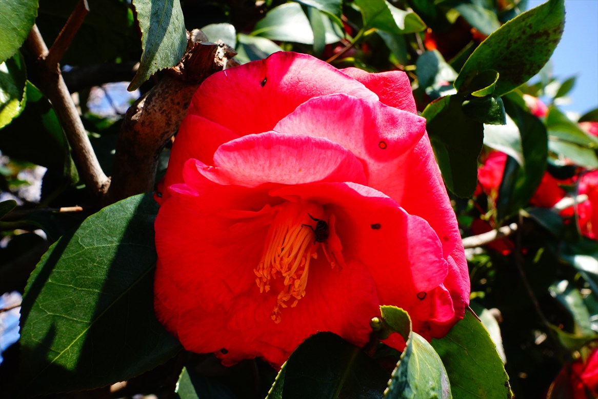 すぐ隣には赤い椿。