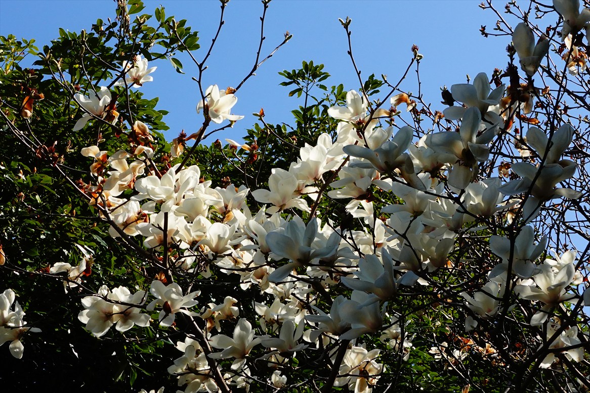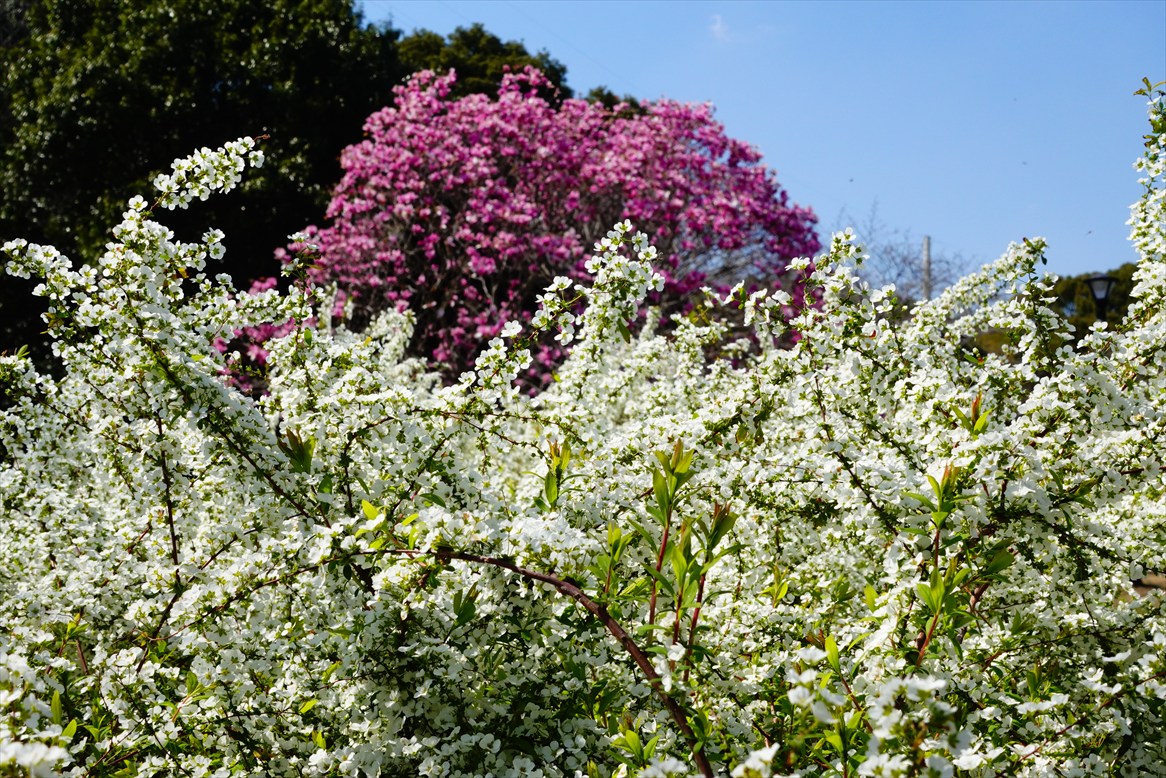 雪柳 と 外紅白木蓮。