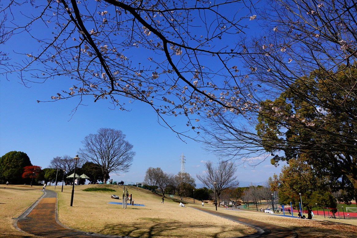 車道を渡ると運動公園の広場。