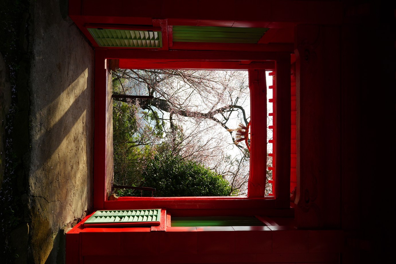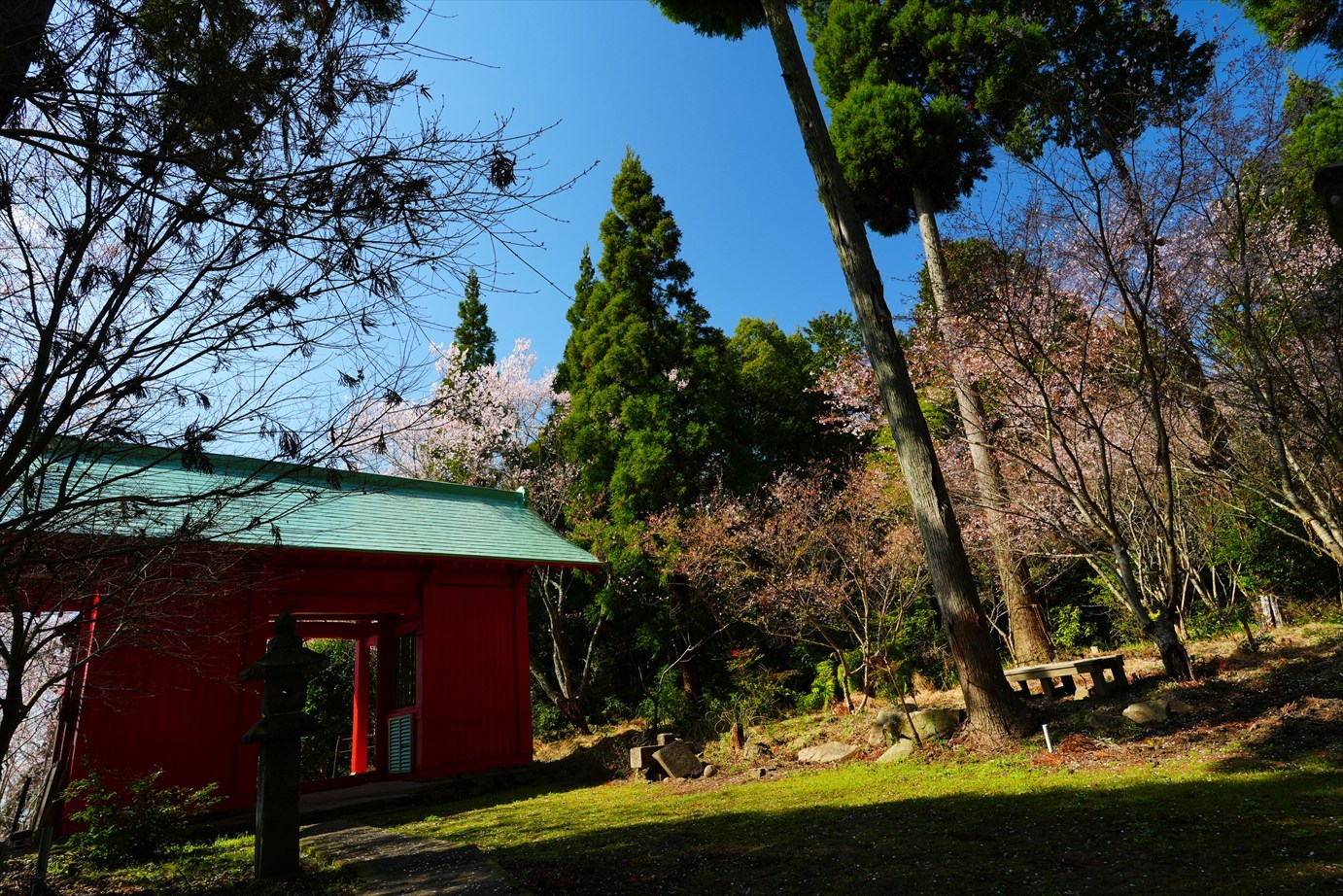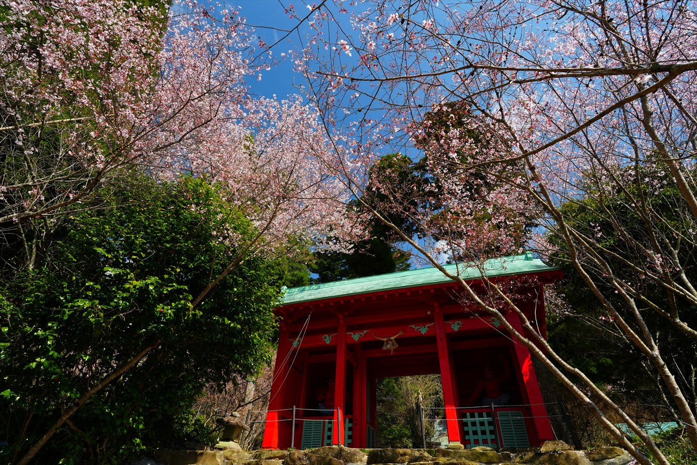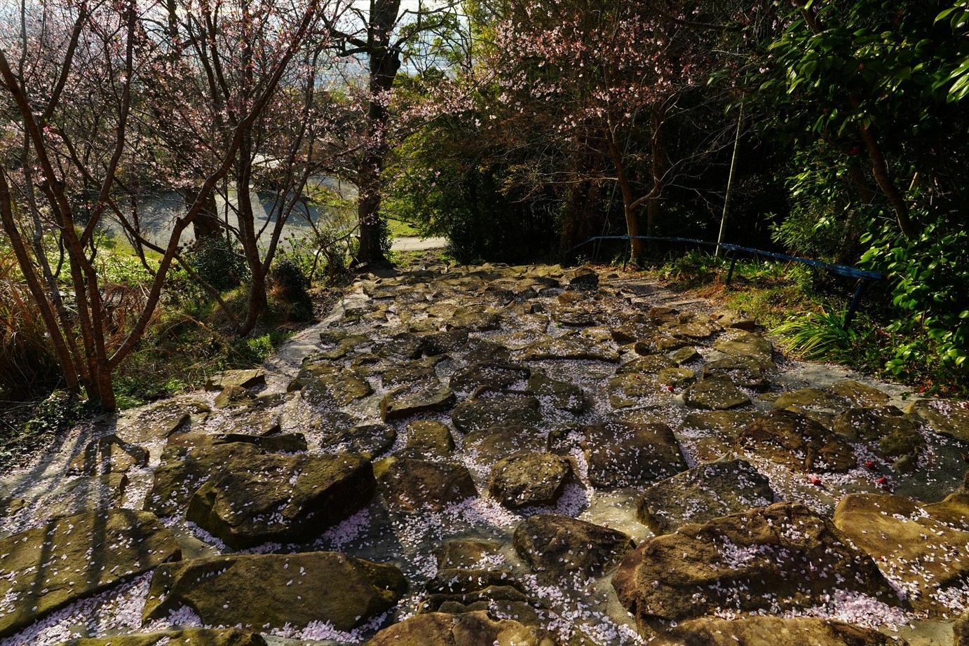 石段の上は桜が咲いてるけど、