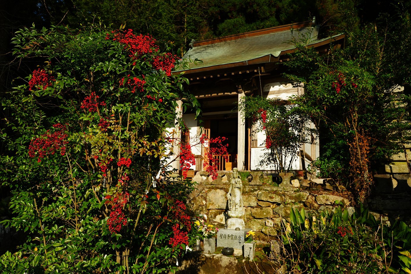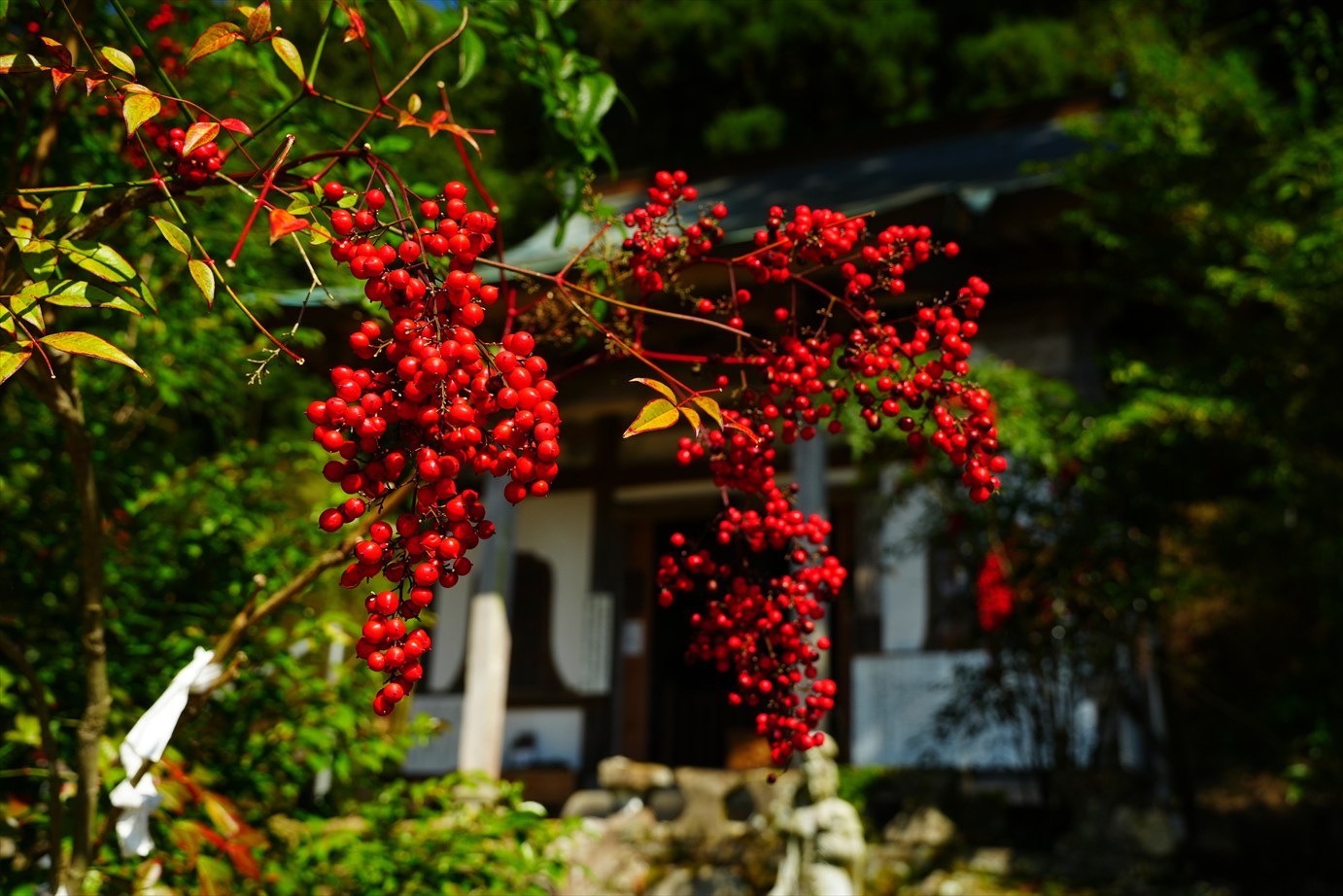お堂の前は南天[ ナンテン ]