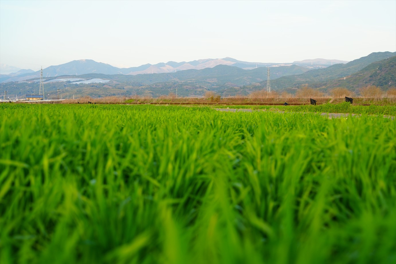 帰りの田圃道で降車して
