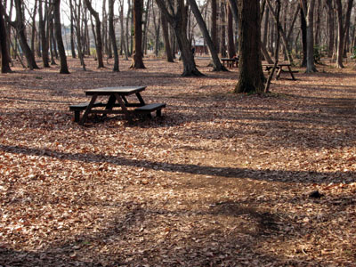 落ち葉の林は、朝や夕方等の斜光線の時は