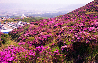駐車場や売店が並ぶ右隣、北方には杵島岳、