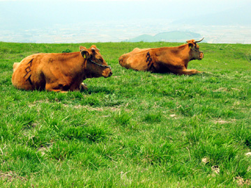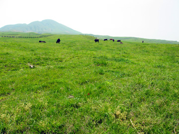 阿蘇名物の赤牛もあちこちで放牧してあった。